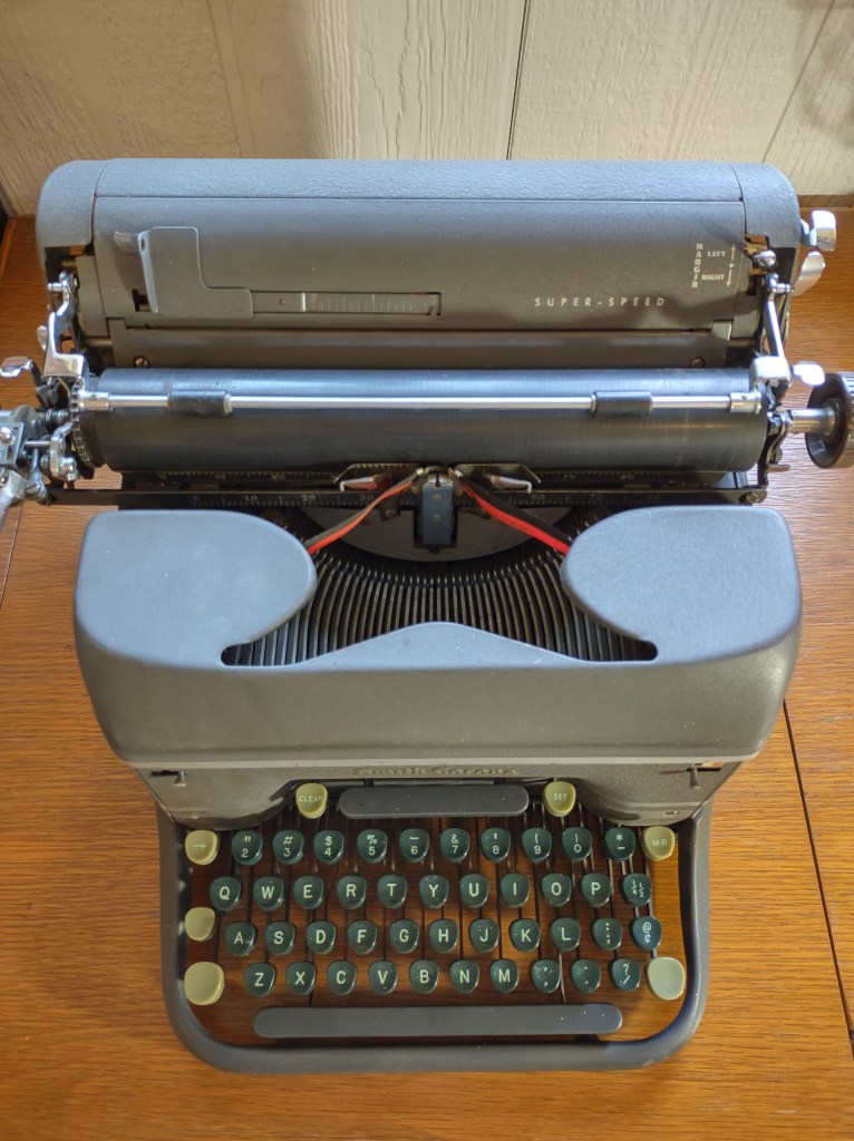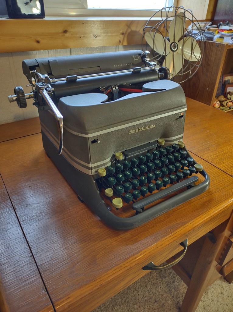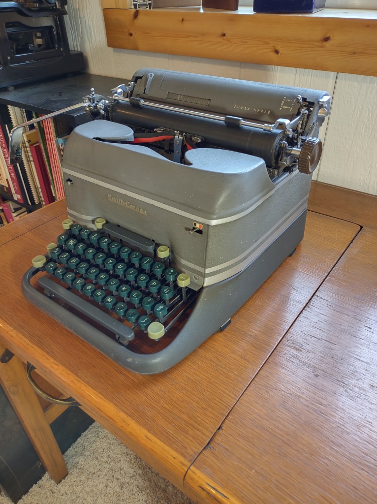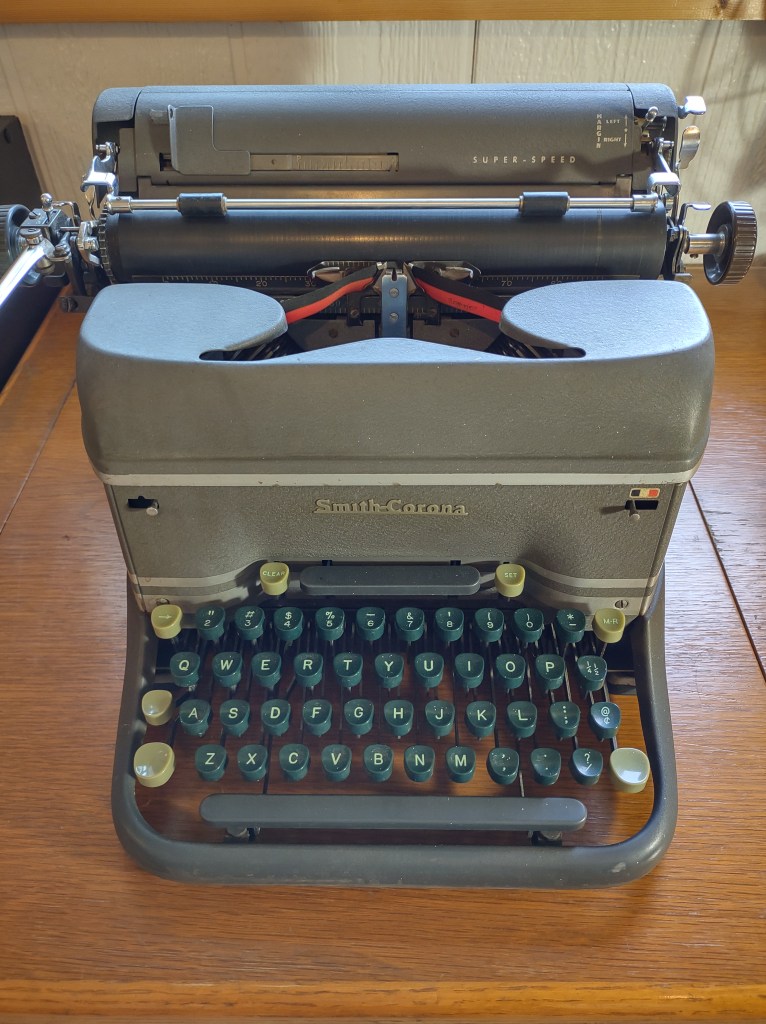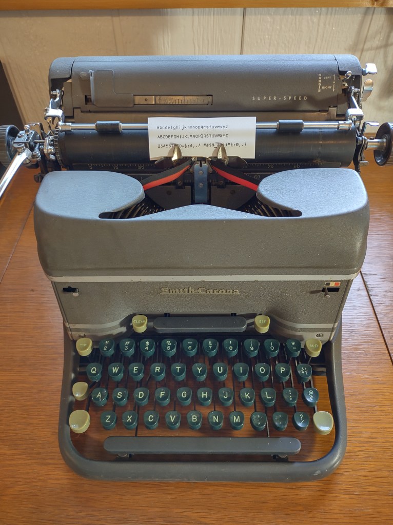 1949 Smith Corona Super Speed (Grey with Stripes and Unique Font called “Pica Pride”, similar to Vogue)